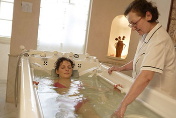 "Zámecké Lázně" - krásné lázeňské centrum Karlových Varů, nabízí svým zákazníkům širokou škálu terapeutických a relaxační programy, jedinečný bazén s termální minerální vodou a cirkulující podvodní masáž.